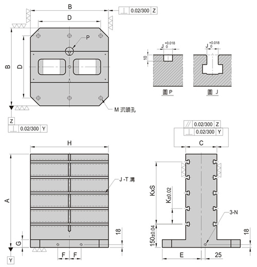 T型槽双面基座工装特点:以T型槽基准方式,配合其他零件及螺栓等可快速组合为工装辅助类组合夹具治具。
